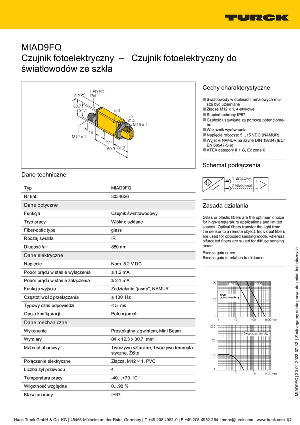 3034626 Czujnik światłowodowy Turck MIAD9FQ 3034626 1 szt.
