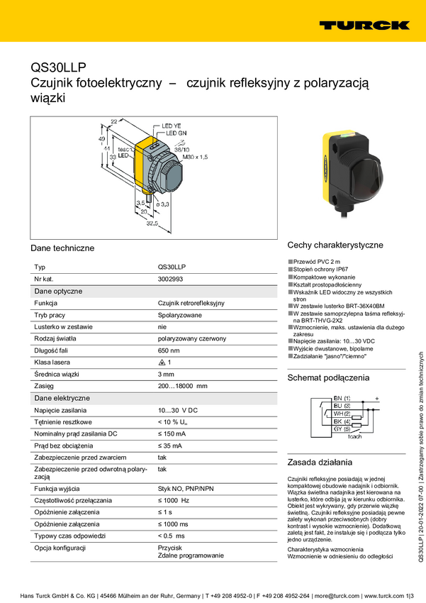 3002993 Fotokomórka odbiciowa Turck QS30LLP 3002993 1 szt.