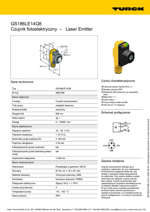 3002789 Opto-czujnik Turck QS186LE14Q8 3002789 1 szt.