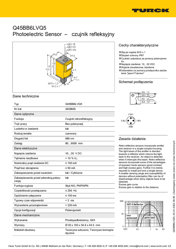 3038665 Fotokomórka odbiciowa Turck Q45BB6LVQ5 3038665 1 szt.