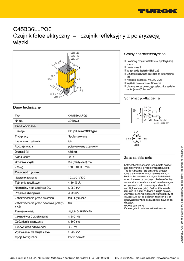 3041033 Fotokomórka odbiciowa Turck Q45BB6LLPQ6 3041033 1 szt.