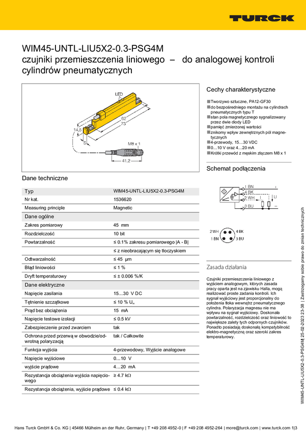 1536620 Turck Czujnik pola magnetycznego WIM45-UNTL-LIU5X2-0,3-PSG4M