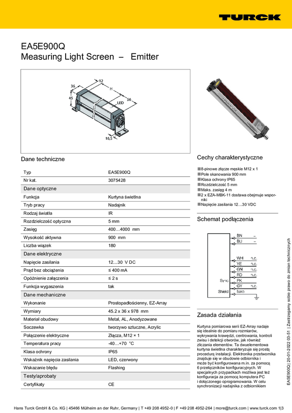 Turck Kurtyna świetlna EA5E900Q Wysokość ochronna 900 mm