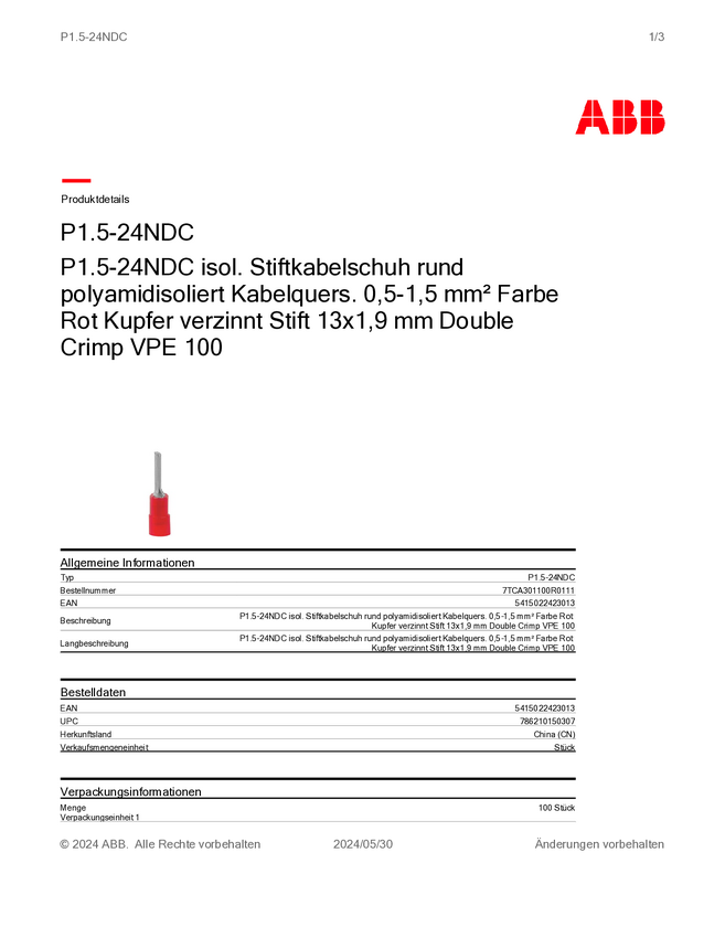 7TCA301100R0111 ABB 7TCA301100R0111 Złącze pinowe 1 szt.