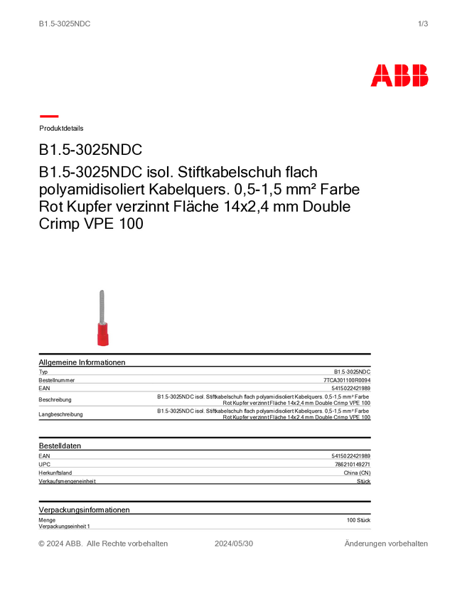 7TCA301100R0094 ABB 7TCA301100R0094 Złącze pinowe 1 szt.