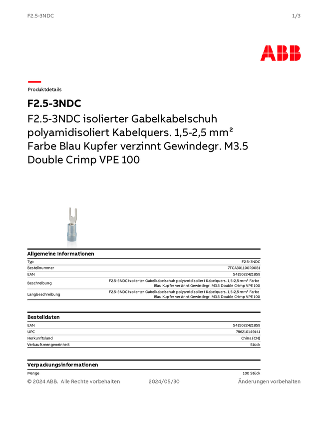 ABB 7TCA301100R0081 Złącze widełkowe 1 szt.