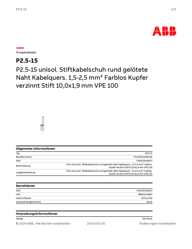 7TCA301010R0135 ABB 7TCA301010R0135 Złącze pinowe 1 szt.