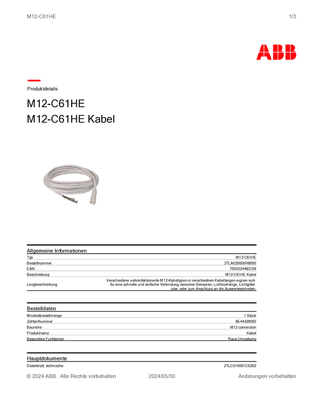 2TLA020056R8000 ABB 2TLA020056R8000 Kabel połączeniowy czujnika/aktuatora gniazdo 6 m I...
