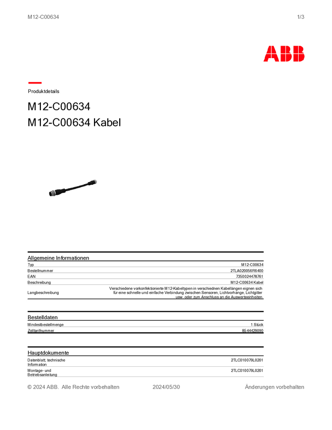 2TLA020056R6400 ABB 2TLA020056R6400 Złącze czujnika/aktuatora złącze męskie 0.06 m Iloś...