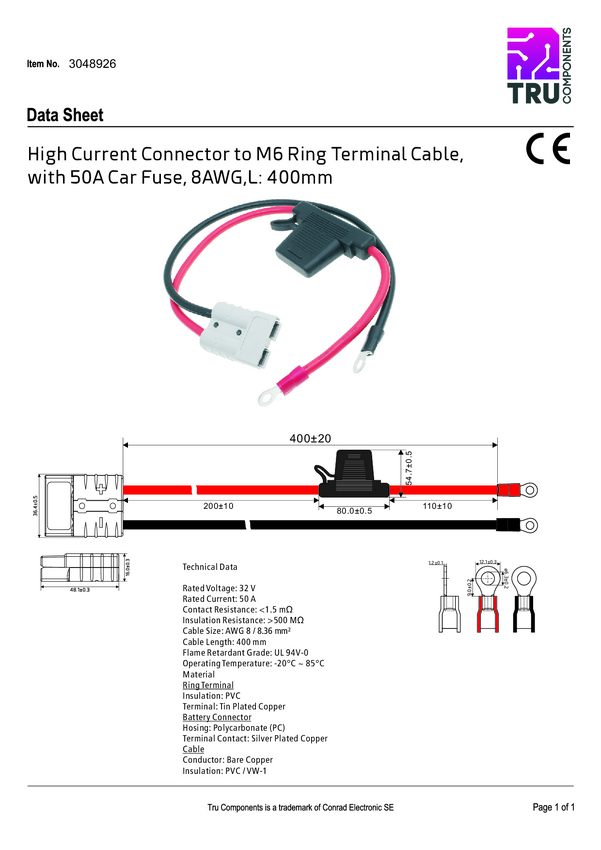 Złącze wysokoprądowe na zacisku pierścieniowym M6, z uchwytem bezpiecznika TC-12195704 czarny, czerwony TRU COMPONENTS Z