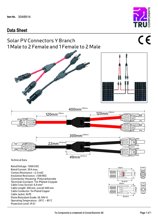 1x równoległa wtyczka złącza solarnego do 2x gniazda + gniazdo do 2x wtyczki TC-12195656 czarny, czerwony TRU COMPONENTS
