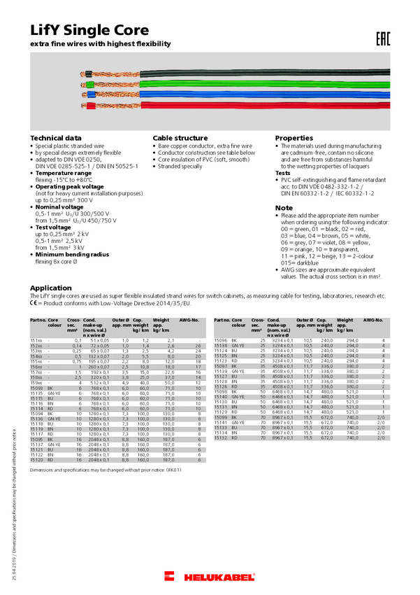 15095-500 Helukabel 15095-500 Przewód jednożyłowy LiFY 1 x 16 mm² czarny 500 m