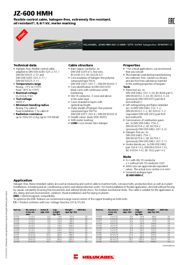 12760-1000 Helukabel JZ-600 HMH Przewód sterowniczy 3 G 1.5 mm² czarny 12760-1000 1000...