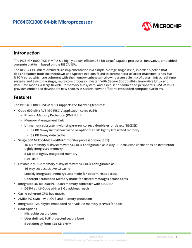 PIC64GX1000 PIC64-GX 64-bit Microprocessor Data Sheet