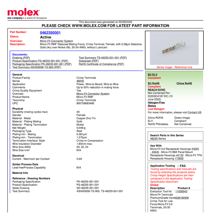 Molex 462350001 FemCrp Term LowForce 462350001 Molex Zawartość: 1 szt.