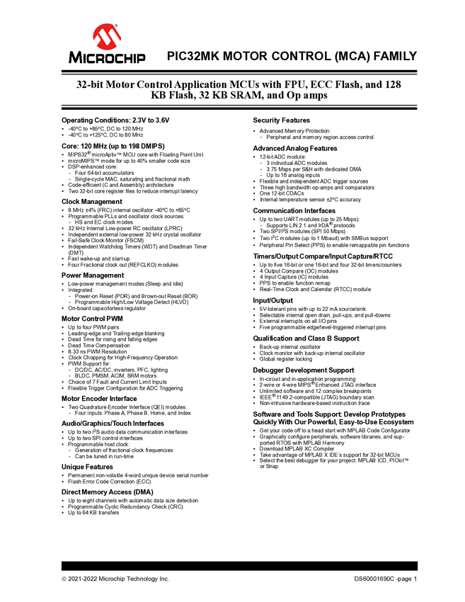 PIC32MK Motor Control (MCA) Family Data Sheet