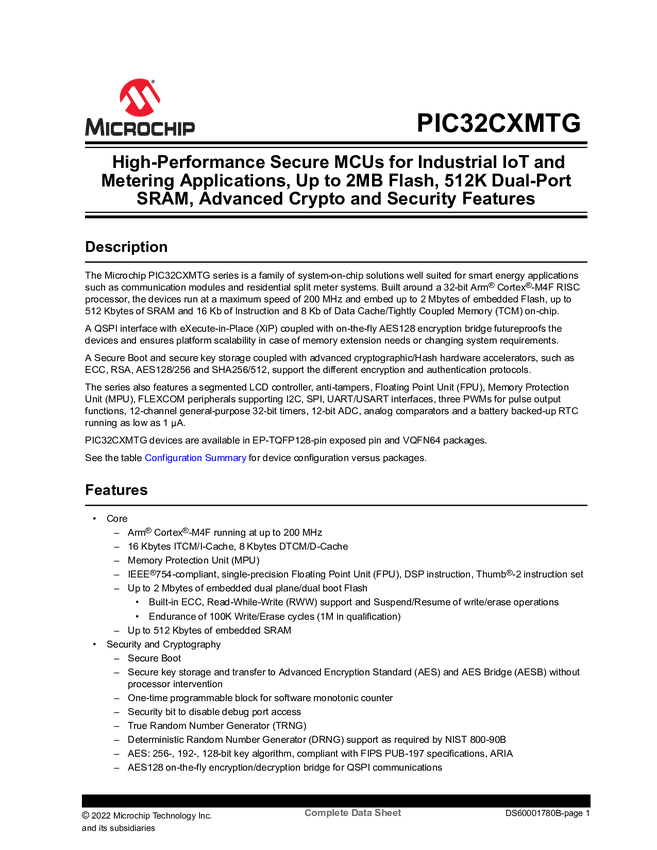 PIC32CX5112MTG128 PIC32CXMTG Data Sheet