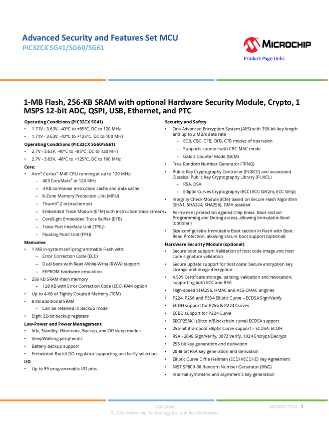 PIC32CX1025SG61128 PIC32CX SG41/SG60/SG61 Data Sheet