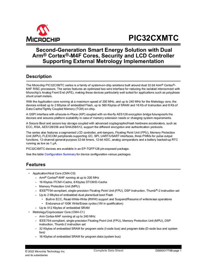 PIC32CX2051MTC128 PIC32CXMTC Data Sheet