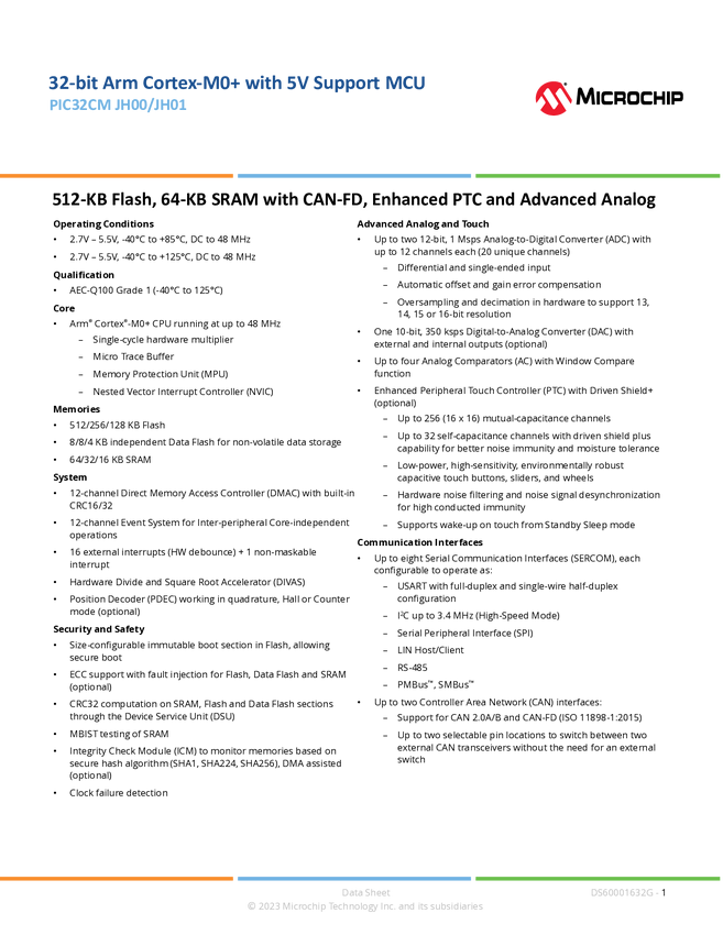 - PIC32CM5164JH01100, PIC32CM5164JH00048, PIC32CM5164JH00064, PIC32CM5164JH00032, PIC32CM5164JH00100, PIC32CM5164JH01064, PIC32CM5164JH01032, PIC32CM2532JH01100, PIC32CM2532JH01064, PIC32CM2532JH01048, PIC32CM2532JH01032, PIC32CM2532JH00064, PIC32CM2532JH00100, PIC32CM2532JH00048, PIC32CM1216JH01048, PIC32CM2532JH00032, PIC32CM1216JH01032