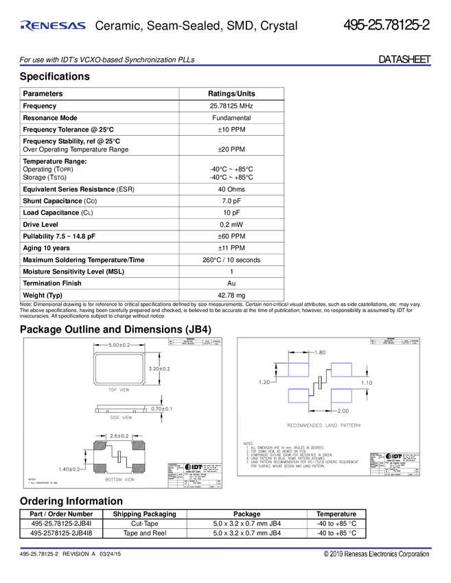 495-25.78125-2JB4I Ceramic, Seam-Sealed, SMD, Crystal