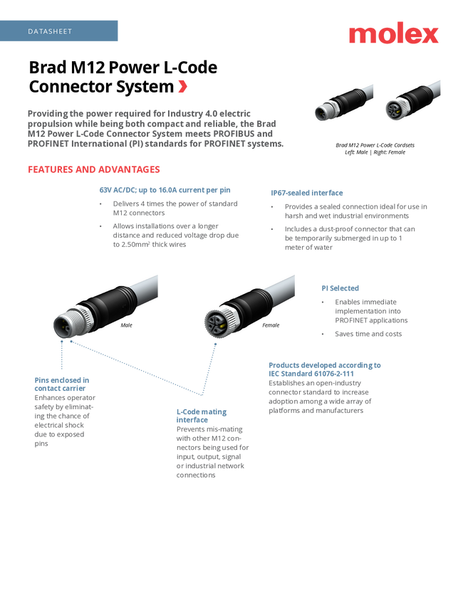 Molex 1205010157 Złącze konfekcjonowane czujnika/aktuatora złącze żeńskie kątowe, złącze męskie kątowe 1 m Ilość pinów: