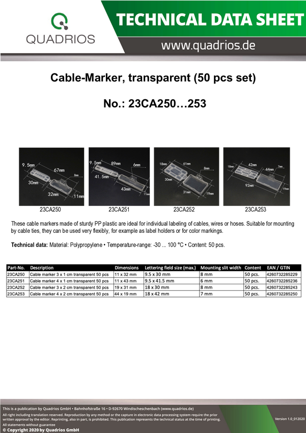 23CA251 Quadrios 23CA251 23CA251 Uchwyt na etykietę Sposób montażu: opaska kablowa...