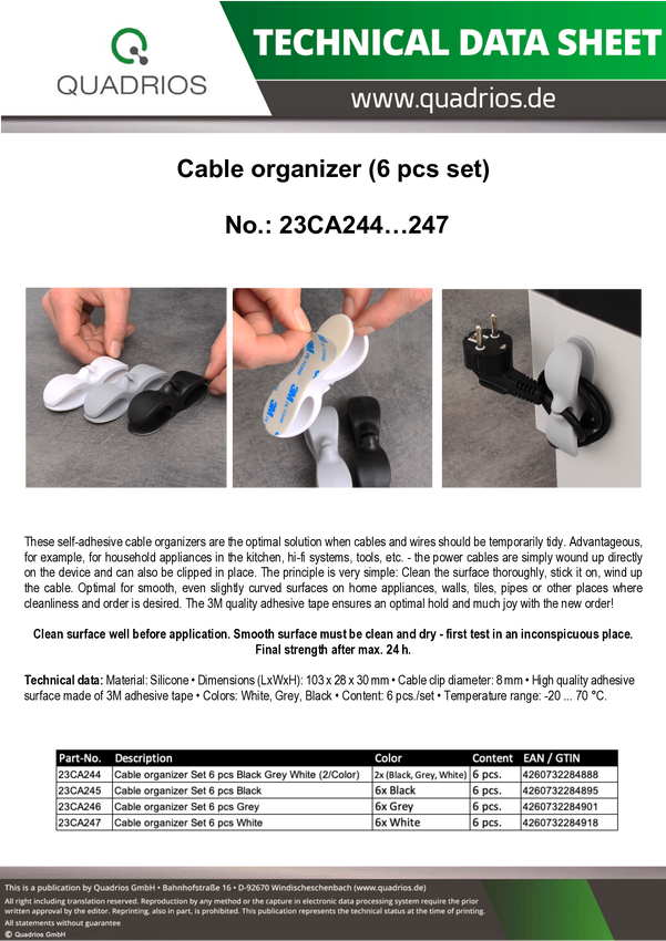 23CA244 Uchwyt kablowy Quadrios 23CA244 23CA244, 6 szt.