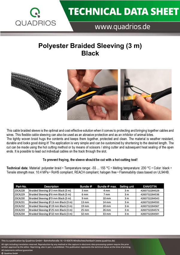 23CA234 Quadrios 23CA234 23CA234 Wąż zbrojony czarny poliester 32 do 33 mm 3 m