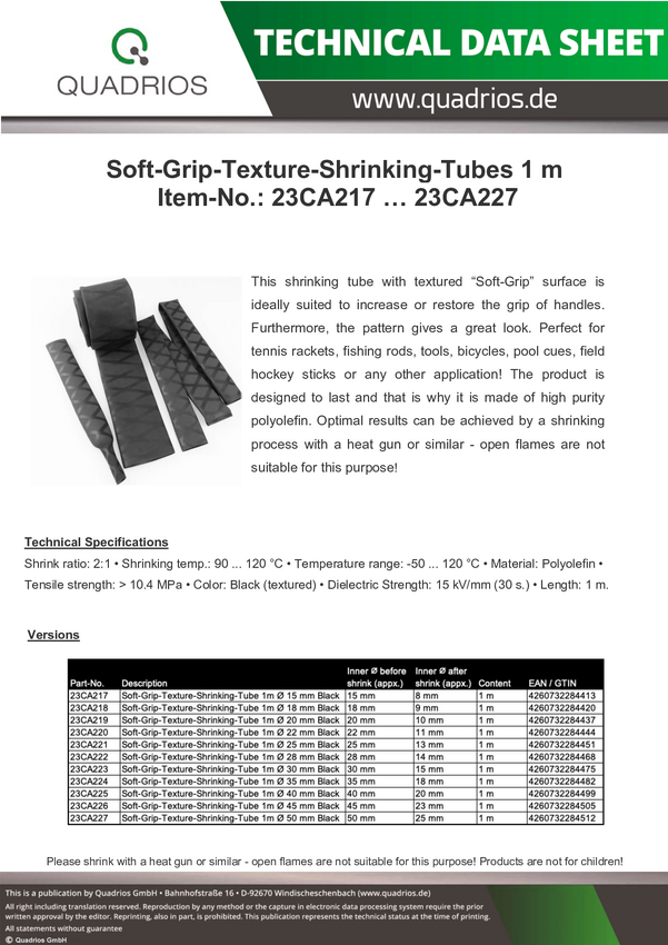 23CA225 Quadrios 23CA225 Rurka termokurczliwa bez kleju 23CA225, 2:1, od 40 mm do 2...