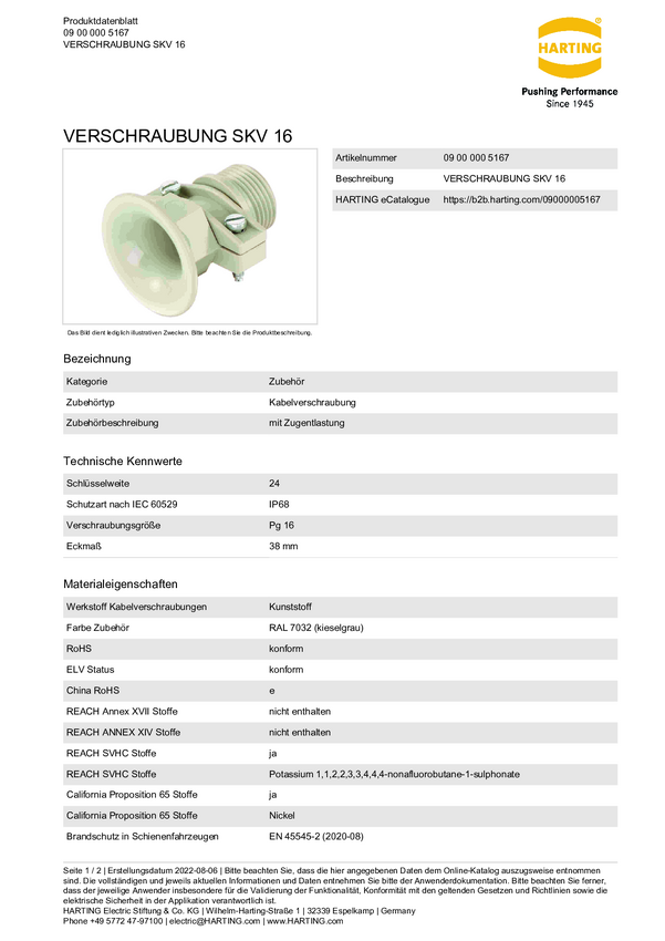 09000005167 Harting 09000005167 Dławnica kablowa PG16 tworzywo sztuczne 1 szt.