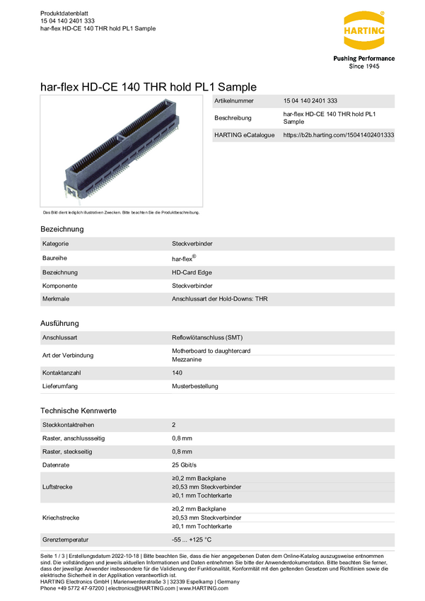 15041402401333 Harting 15041402401333 Złącze męskie Łączna ilość styków: 140 1 szt.