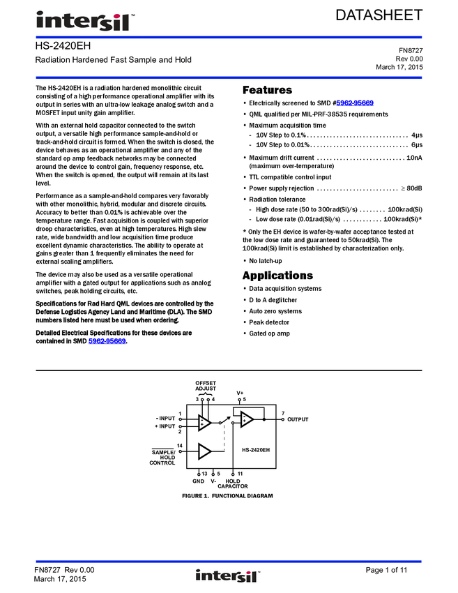 HS1B-2420EH/PROTO Radiation Hardened Fast Sample and Hold