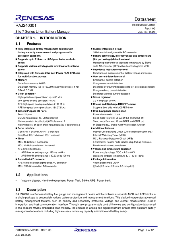 RAJ240301GFP 3 to 7 Series Li-ion Battery Fuel Gauge IC