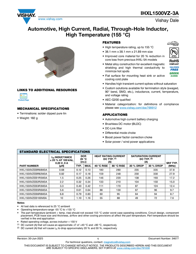 IHXL1500VZ-3A Automotive, High Current, Radial, Through-Hole Inductor, High Temperature (...