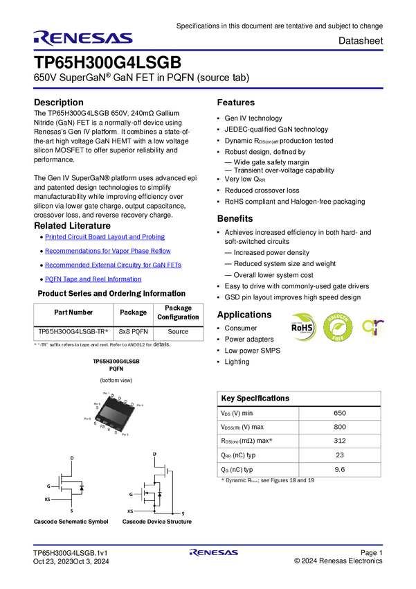 TP65H300G4LSGB 650V 240mΩ SuperGaN FET in PQFN88