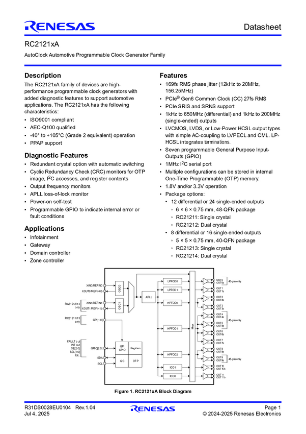 RC2121 AutoClock Automotive Programmable Clock Generators