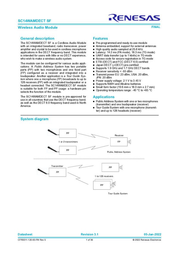 SC14WAMDECT Wireless Audio Modules for Public Address and Tour Guide Systems