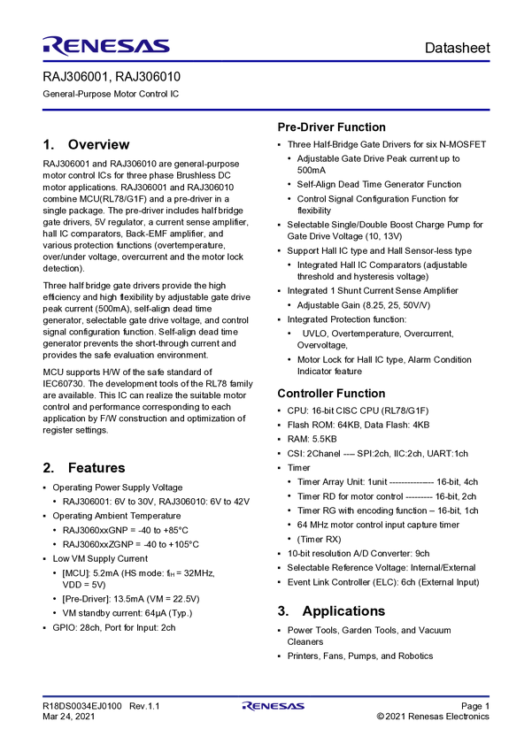 RAJ306010 General Purpose Motor Control IC