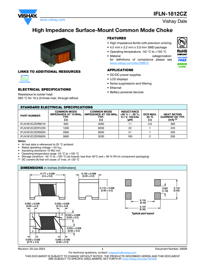 IFLN-1812CZ High Impedance Surface-Mount Common Mode Choke