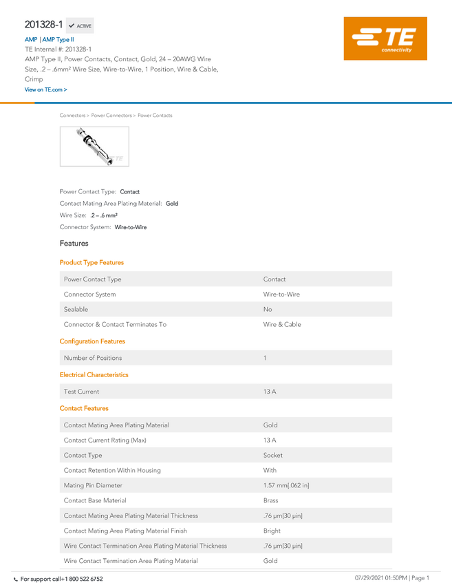 201328-1 TE Connectivity 201328-1 TE AMP Multimate Contacts, 1 szt.