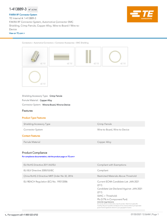 1-413889-3 Infotainment Connectors - RF TE AMP Infotainment Connectors - RF 1-413889-3...