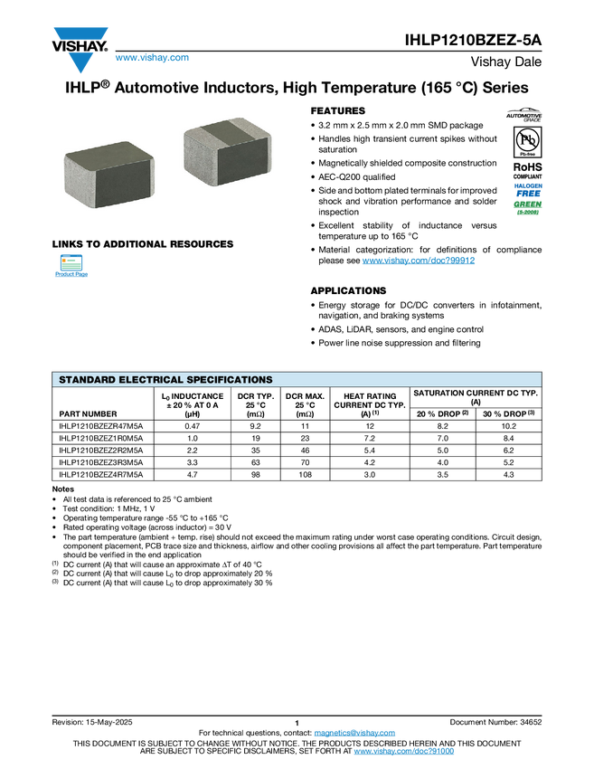 IHLP® Automotive Inductors, High Temperature (165 °C) Series