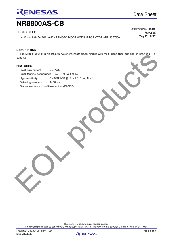 NR8800AS-CB φ 80 μm InGaAs Avalanche Photo Diode Module for OTDR Applications