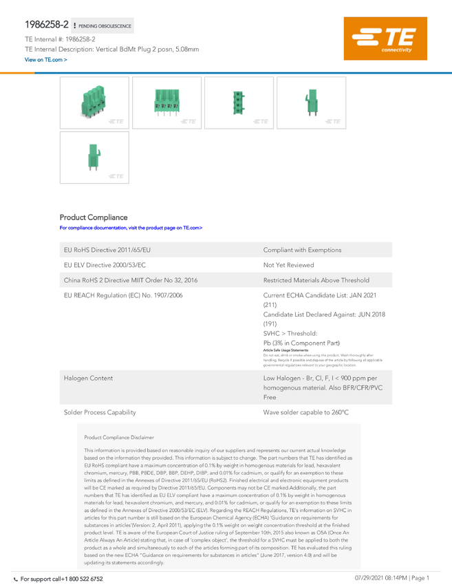 1986258-2 TE Connectivity 1986258-2 TE AMP Eurostyle Terminal Blocks, 1 szt.