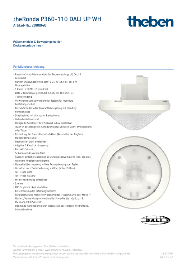 2080040 Czujnik obecności Theben 2080040 biały