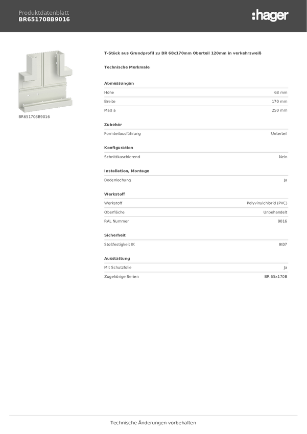 BR651708B9016 Trójnik (rozgałęźnik T) Hager Tehalit BR651708B9016, 1 szt.