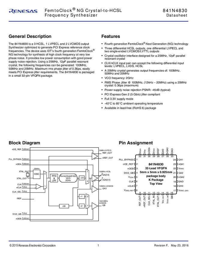 841N4830BKILFT FemtoClock™ NG Crystal-To-HCSL Frequency Synthesizer