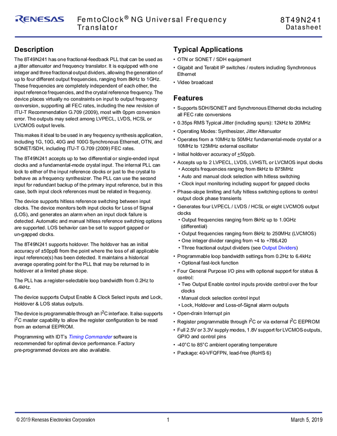 8T49N241-998NLGI FemtoClock NG Universal Frequency Translator