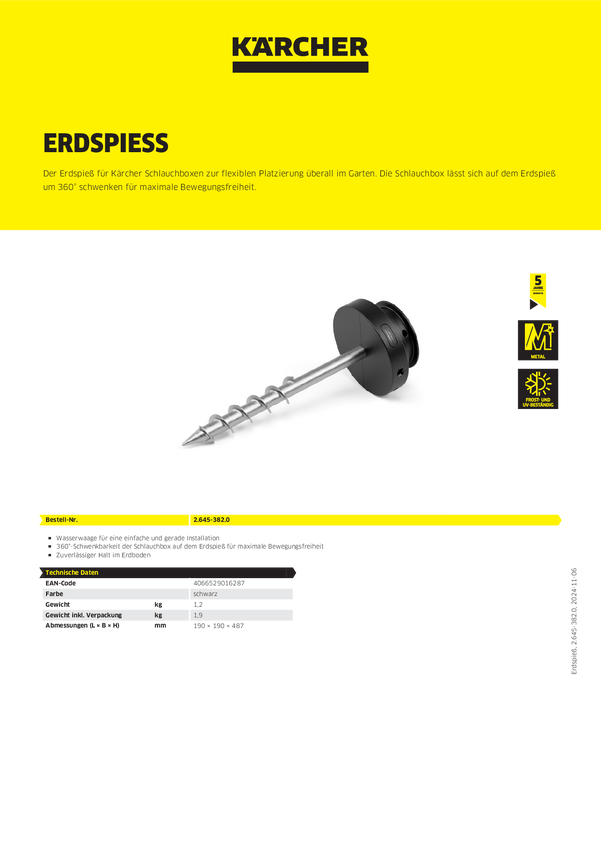 Kärcher Home & Garden 2.645-382.0 Kolec uziemiający skrzynki węża 1 szt.